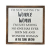 This 10x10 rustic wooden sign brings a touch of humor and empowerment to your space. Featuring the playful phrase, “I’m not saying I’m Wonder Woman… I’m just saying no one has ever seen me and Wonder Woman in the same room,” it’s perfect for the strong woman who embraces her inner superhero. Great for home offices, living rooms, or as a gift.